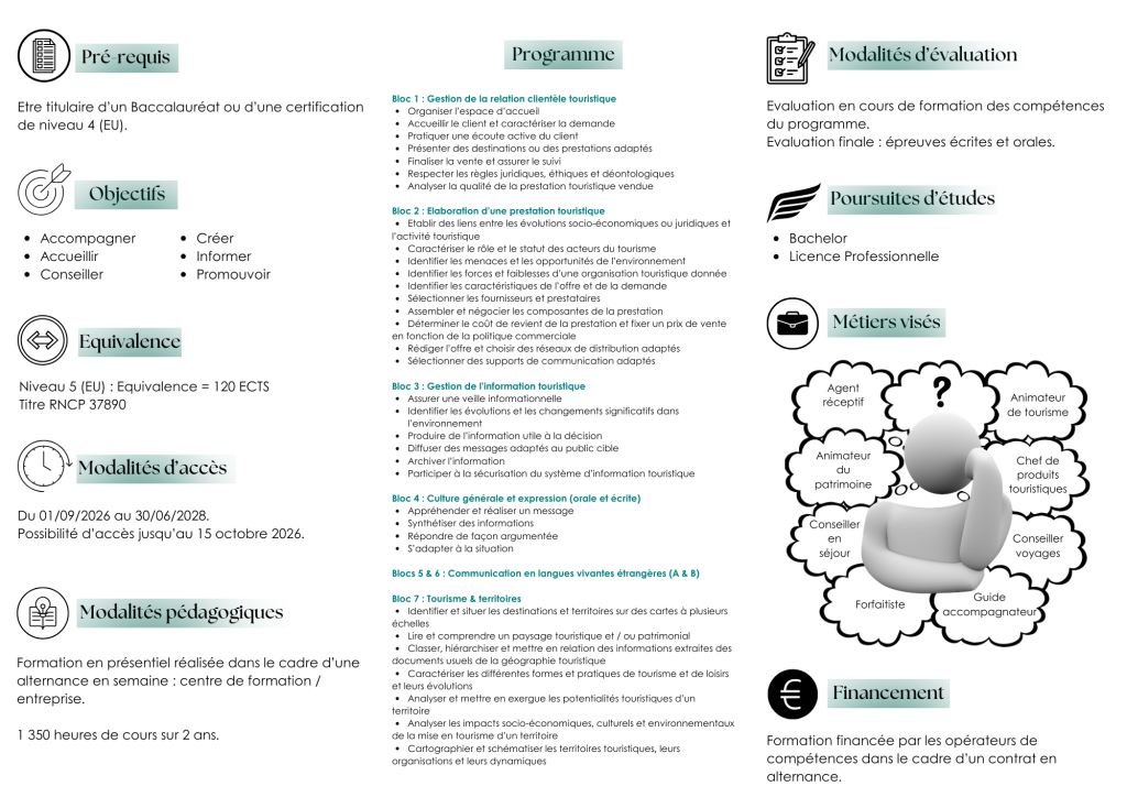 Vous pouvez retrouver le programme détaillé de la formation en cliquant ici : BTS Tourisme